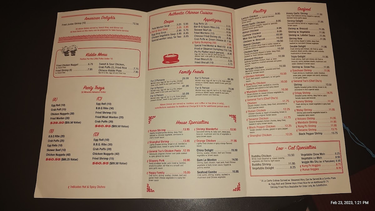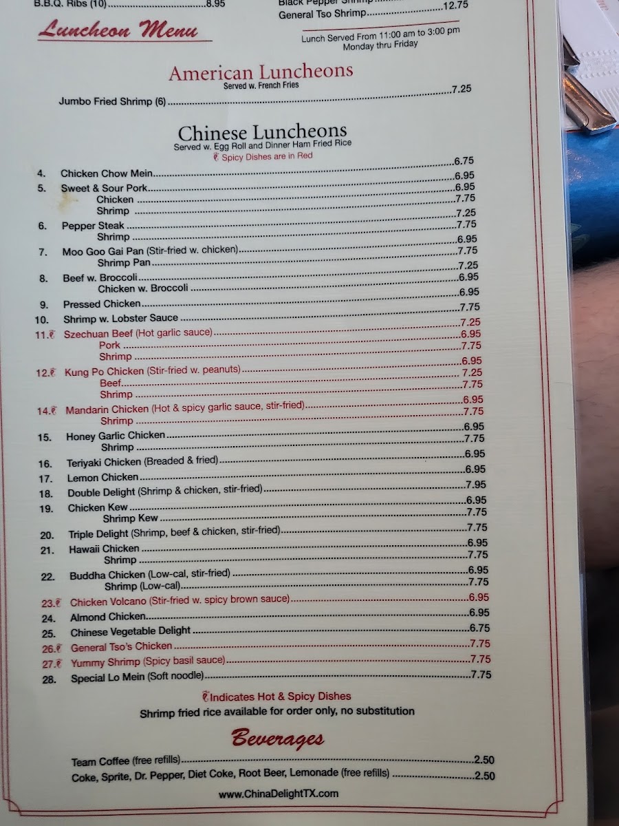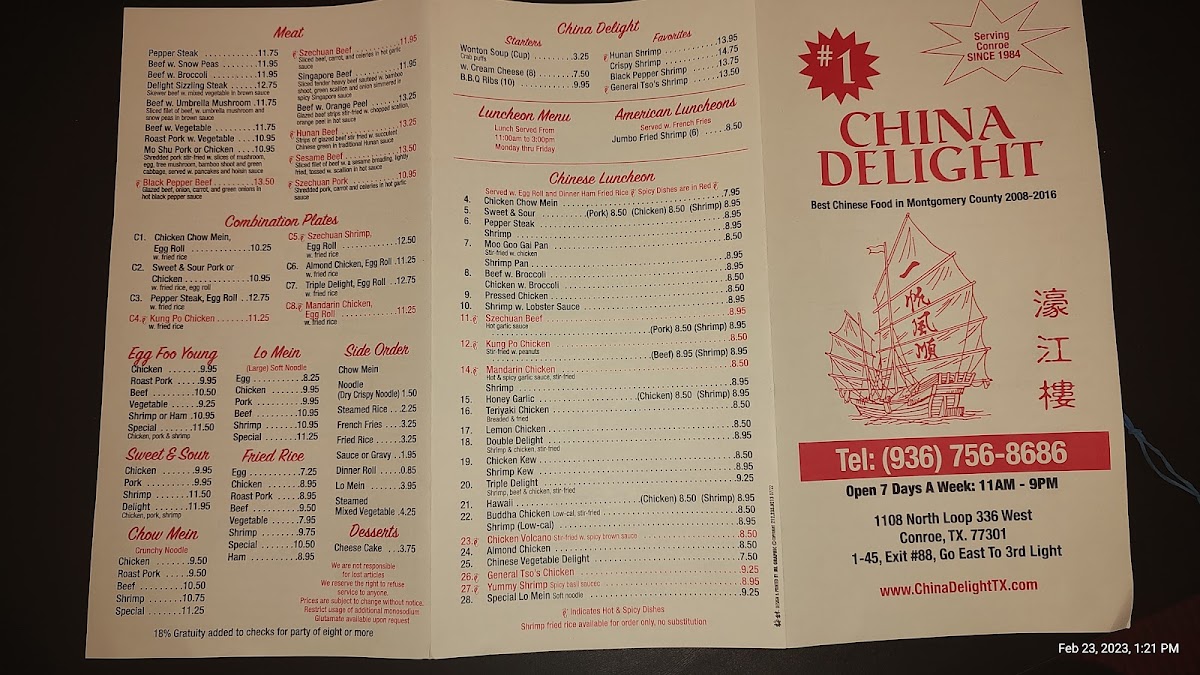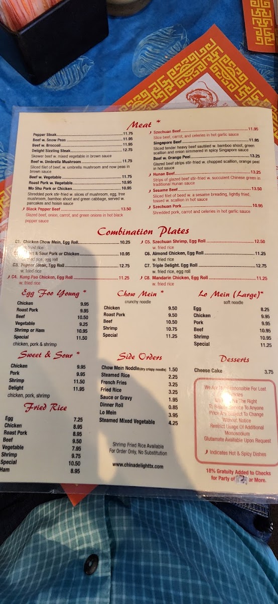 In conclusion, China Delight delivers a wide-ranging menu that features authentic Chinese dishes, alongside a few American options, all served in generous portions. Whether you're in the mood for a quick lunch, a satisfying dinner, or a family feast, there's something to suit every palate at this welcoming restaurant.